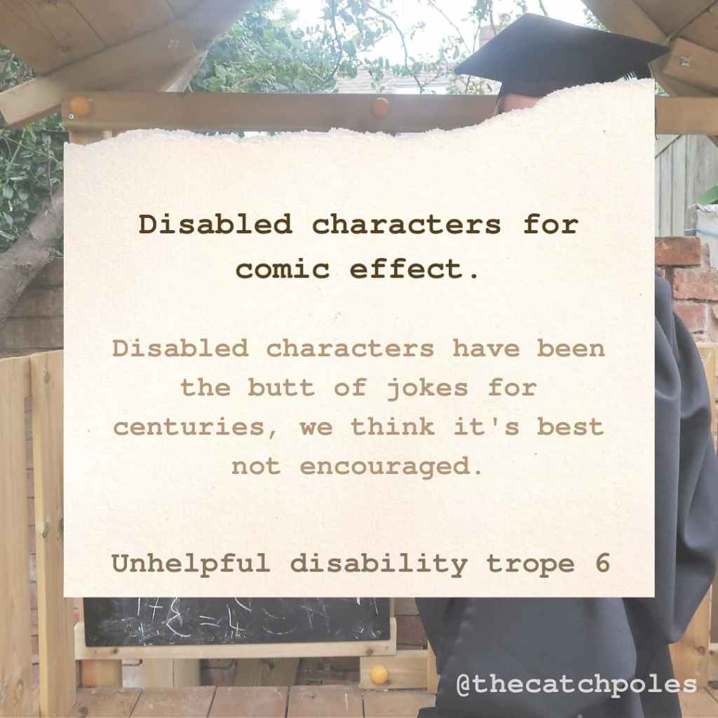 Image 7: ‘Disabled characters for comic effect. Disabled characters have been the butt of jokes for centuries, we think it’s best not encouraged. Unhelpful disability trope 6’